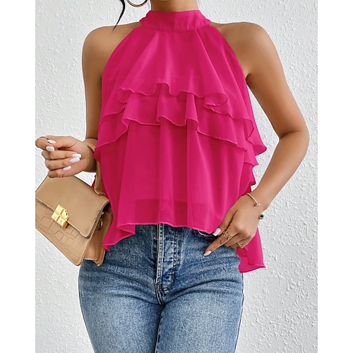 Per donna Canotta Maglietta Tinta unica Elegante Moda Senza Maniche Collo Alto Top Regolari Quotidiano Uscire Weekend Volant Nero Blu marino Azzurro cielo Viola Verde Estate Primavera