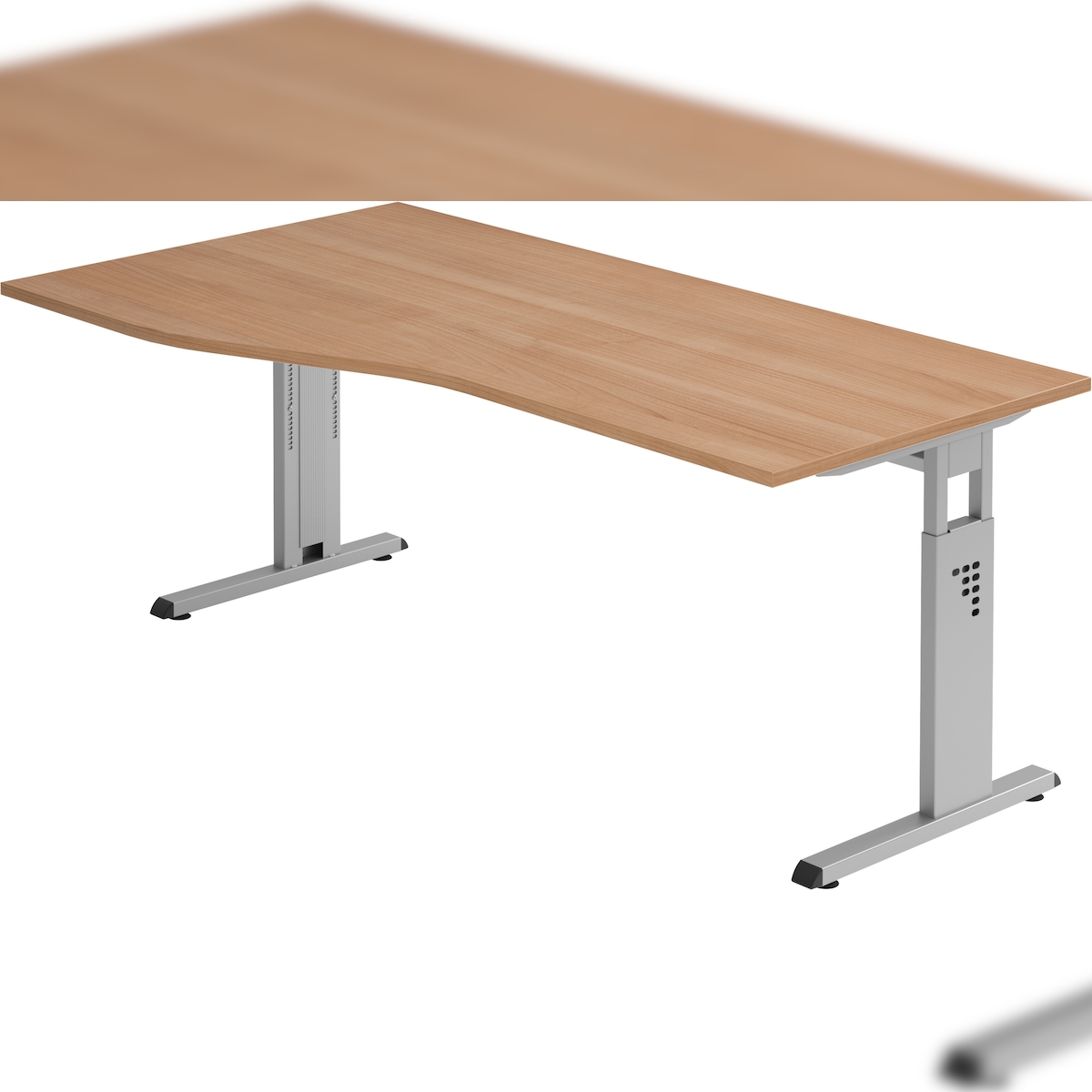 bümö höhenverstellbarer Schreibtisch O-Serie 180x100 cm in Nussbaum, Gestell in Silber - großer PC Tisch für's Büro manuell höhenverstellbar,