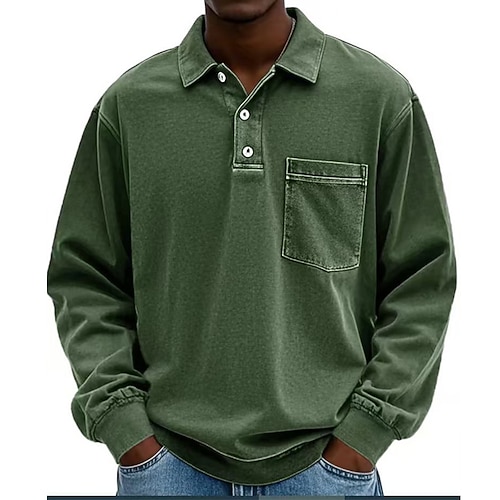Per uomo Polo Maglia da golf Casuale Streetwear Bavero Manica Lunga Essenziale Moderno Semplice Tasca Bottoni Primavera Autunno Vestibilità regolare Blu Viola Nero Blu marino Fuschia Marrone Polo