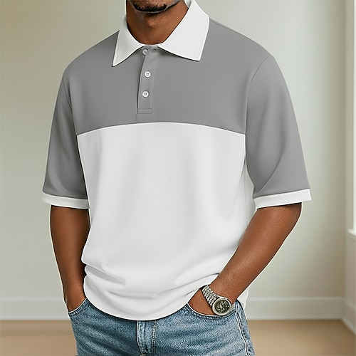 Per uomo Polo Maglia da golf Casuale Sportivo Classico Manica Corta Moda Cool Blocco di colori Semplice Bottoni Estate Primavera Autunno Vestibilità regolare Nero Bianco Blu marino Grigio chiaro