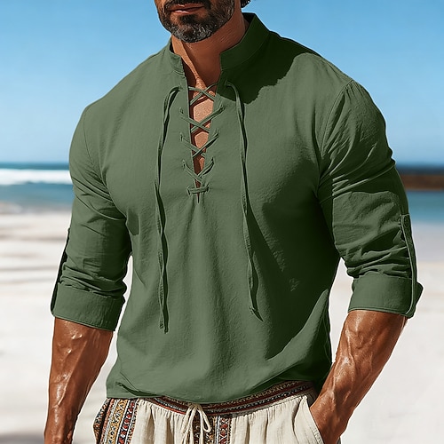Per uomo Camicia Stile vichingo Camicia Estiva Abbigliamento da spiaggia Camicia pirata Tinta unica Casuale Vacanza Bianco Blu marino Azzurro cielo Verde Manica Lunga Collo alla coreana Estate