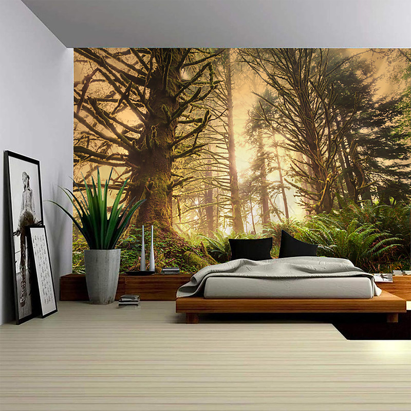 Tropical Forest Rainforest Landscape Wall Tapestry Magical Natural Green Tree Tapestry Wall Hanging Bohemian Psychedelic Tapestry Bedroom Living Room Dormitory