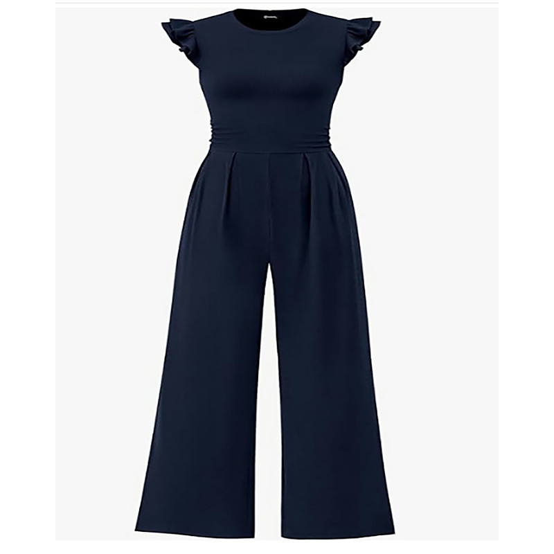 Women's Jumpsuit Active Solid Color Sleeveless Wide Leg Round Neck Ruffle Pocket Daily Vacation Regular Fit Black Navy Blue Spring
