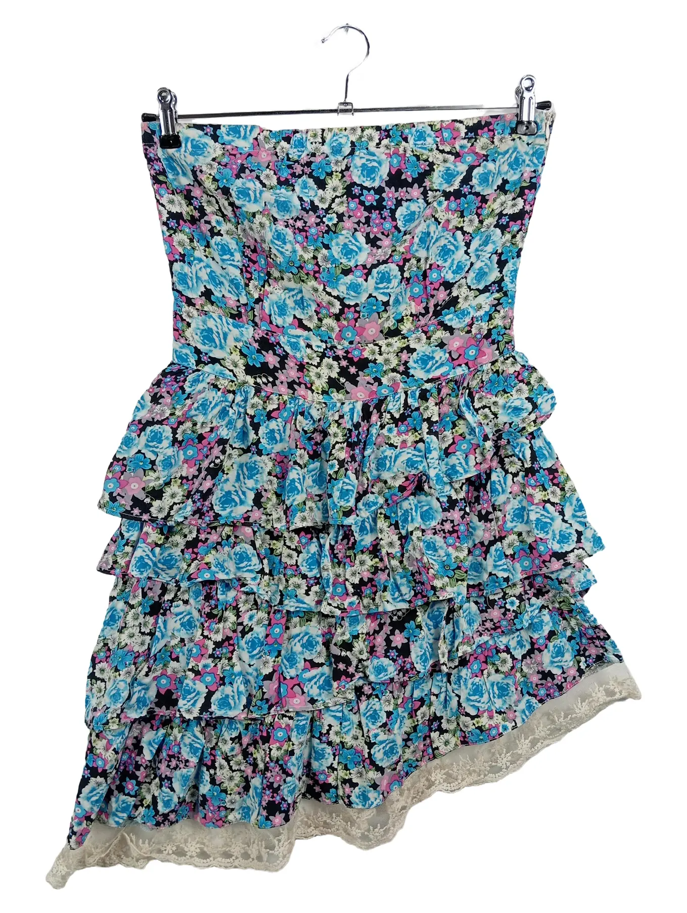 DANITY Bandeau Kleid Mini Blau Blumenmuster Größe 40 M
