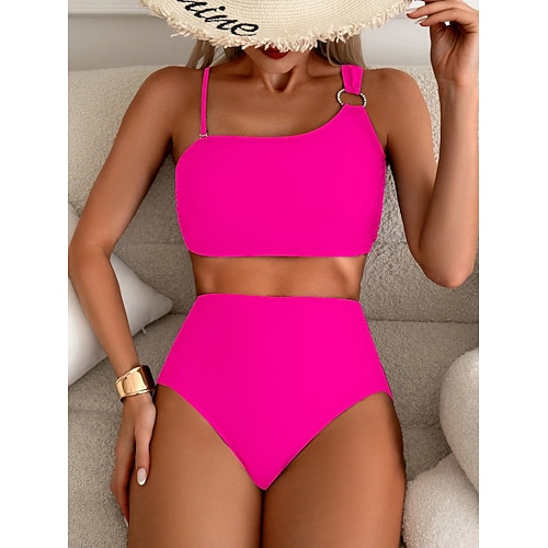 Damen Bikini 2-teiliges Badeanzug Frech Schlank Rückenfrei Urlaub Mode Einfarbiger Halterhals ärmellose Badeanzüge
