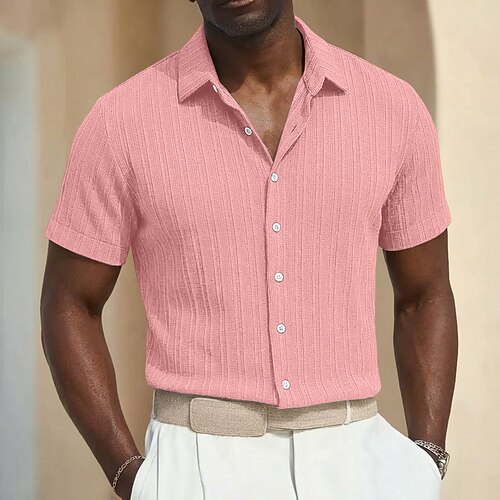 Per uomo Camicia Camicia casual Camicia da Spiaggia Camicia con Bottoni Camicia Jacquard Blu Nero Bianco Rosa Blu marino Manica Corta Semplice Bavero Casuale Abbigliamento casual alla moda