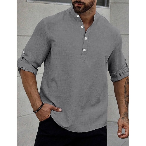 Per uomo Camicia di lino Camicia popover Camicia casual Camicia da Spiaggia Camicia con colletto alla coreana Semplice Casuale Abbigliamento casual alla moda Nero Bianco Rosa Azzurro cielo Manica