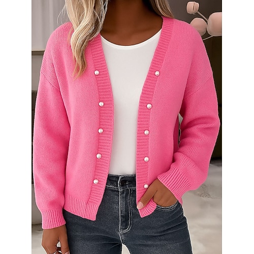 Per donna Felpa Cardigan Moda Quotidiano Casual Scollo a V Con perline Manica Lunga Top Regolari Maglia Quotidiano Weekend Nero Rosa Primavera