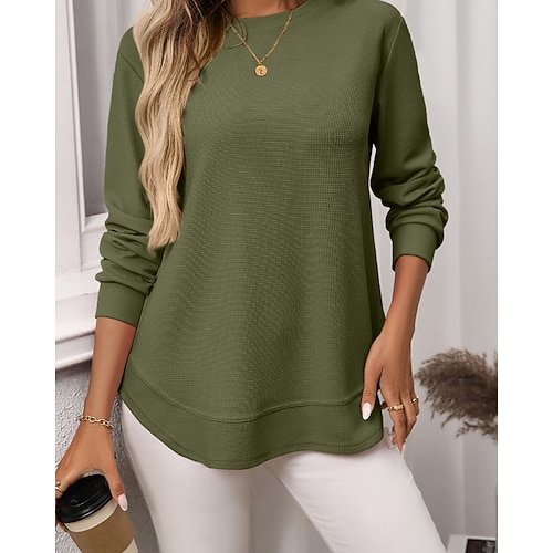 Per donna Maglietta Semplice Casual Manica Lunga Girocollo Top Regolari Quotidiano Uscire Weekend Nero Bianco Rosa Verde militare Marrone Autunno Inverno