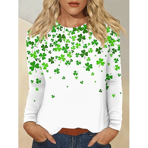 Festa di San Patrizio Per donna Maglietta Grafico Trifoglio Moda Casual Manica Lunga Girocollo Top Regolari Quotidiano Weekend Stampato Nero Bianco Estate Primavera Autunno