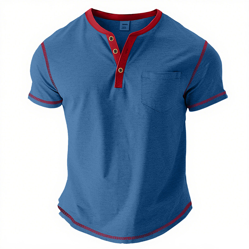 Men's Henley Shirt Tee Henley Top Short Sleeve Solid Color Plain Fashion Designer Casual Pocket Color Block Henley Outdoor Casual Daily Summer All Seasons Black Light Blue Burgundy Henley T-Shirt