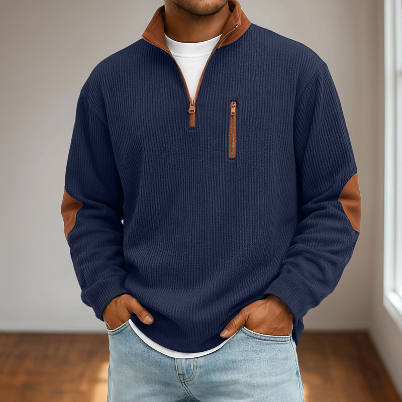 Men's Corduroy Shirt Tee Top Long Sleeve Shirt Long Sleeve Zip Fall Winter Fall Winter Color Block Daily Textured Casual Zip Up Oversized Loose Casual Outdoor Street Black Light Green Dark Blue Top