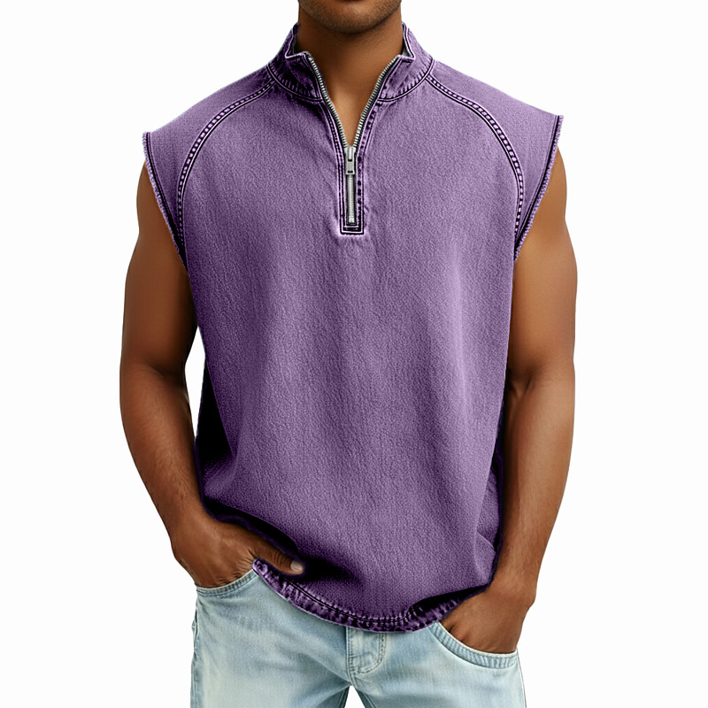 Men Tank Top Vest Top Denim Shirt Sleeveless Zip Summer Plain Fashion Designer Casual Vintage Style Buttons Outdoor Gym Going out Black Light Green Pink Top Tee for Men