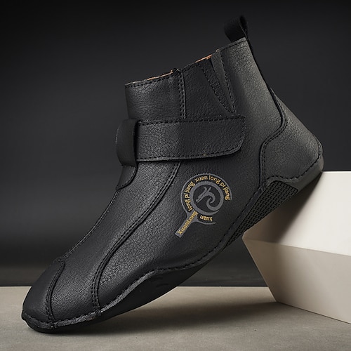 stivaletti retrò fatti a mano da uomo con cinturino in velcro: stivali da passeggio casual artistici per uomini creativi e outfit urbani di tutti i giorni