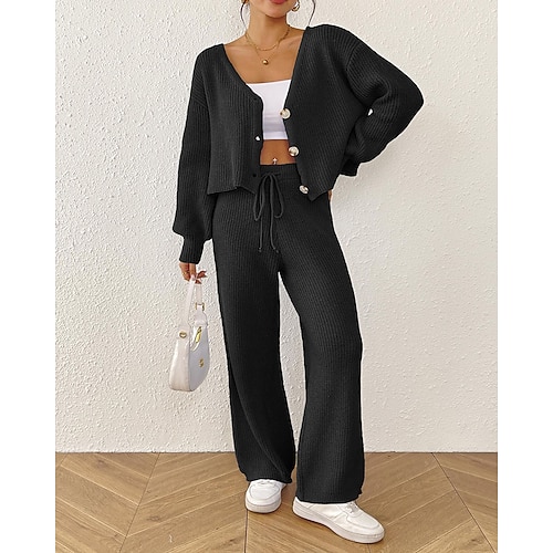 Per donna Attivo Streetwear Set di Pantaloni Bolero Top Manica Lunga Scollo a V Semplice All'aperto Vacanza Quotidiano Nero Blu Beige Autunno Vestibilità regolare