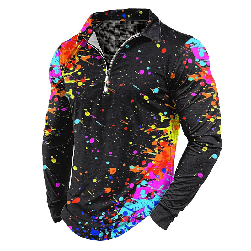 Per uomo Geometrico Polo Manica Lunga Magliette polo Casual All'aperto Streetwear Abbigliamento quotidiano Stampa 3D Polo con cerniera a un quarto Primavera Autunno Inverno Nero Bianco