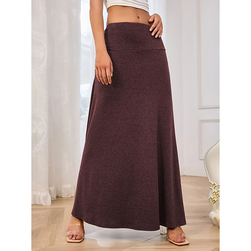 Women's Skirt A Line Fashion Casual Maxi High Waist Skirts Plain Knitting Stretchy Street Daily Wine Sage Green Black Army Green Spring Knit Polyester