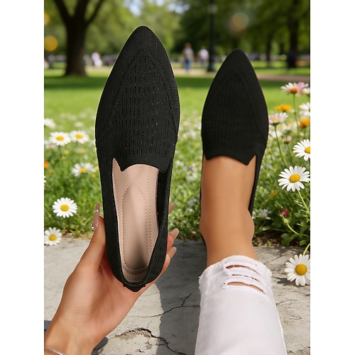 ballerine gialle Flyknit a punta larga da donna – scarpe casual traspiranti per lavoro, viaggi e gite primaverili