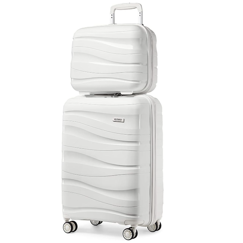Kono Luggage Sets of 2 Piece Lightweight Polypropylene Hard Shell Suitcase with TSA Lock Spinner Wheels Travel Carry On Hand Cabin Luggage with Beauty Case (Set of 2, White)
