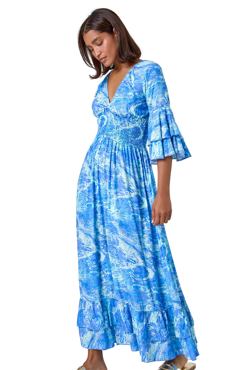 Principles Womens Blue Abstract Print Contrast Detail Shirt Dress - Size 14 UK | Principles Sale | Discount Designer Brands