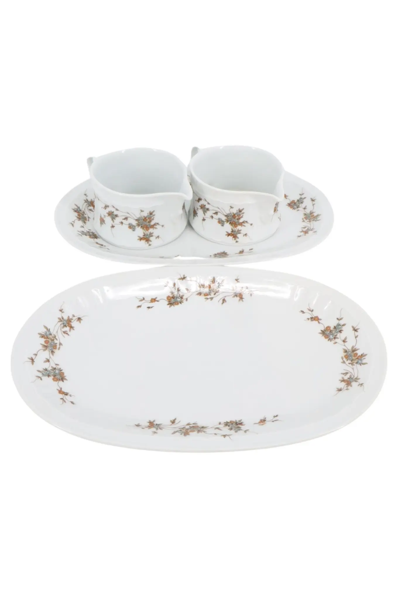 ESCHENBACH Servierset Weiß Porzellan Blumendekor 4 Teile Elegant