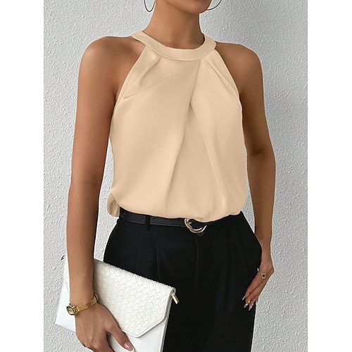 Per donna Camicia in raso Camicia con collo camp Tinta unica Elegante Essenziale Casual Senza Maniche All'americana Top Regolari Quotidiano Ferie Uscire Arricciato Nero Bianco Champagne Vino Verde