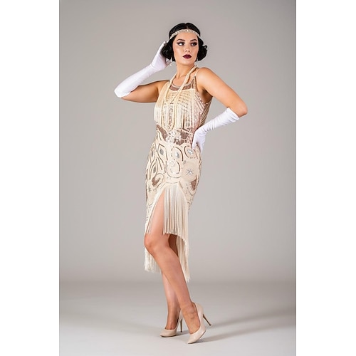 Retrò Vintage Anni Ruggenti Anni 1920 Midi Abito Flapper Senza maniche Il grande Gatsby Paillettes Frange Scollo a V Costume Per donna Natale Carnevale Mascherata Festa a tema retrò Danza Charleston