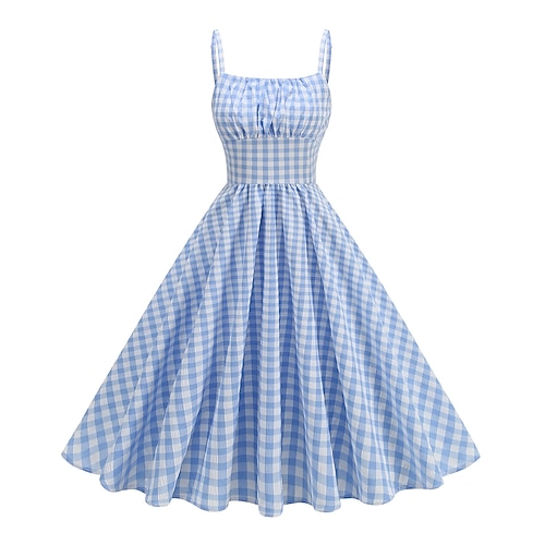 Retrò Vintage Anni 1950 Hepburn Midi Vestito Abito a trapezio Vestito Svasato Canotta Plaid Aderente Svasato Costume Per donna Carnevale San Valentino Casuale Ritorno a casa Festa a tema retrò