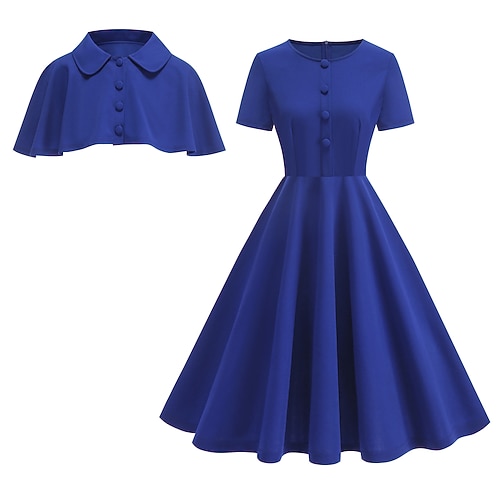 Retrò Vintage Anni 1950 Abito a trapezio Abito Swing Tinta unica Costume Per donna Costume originale Capodanno Festa a tema retrò Abito da cocktail Adulti Vestito Scialle