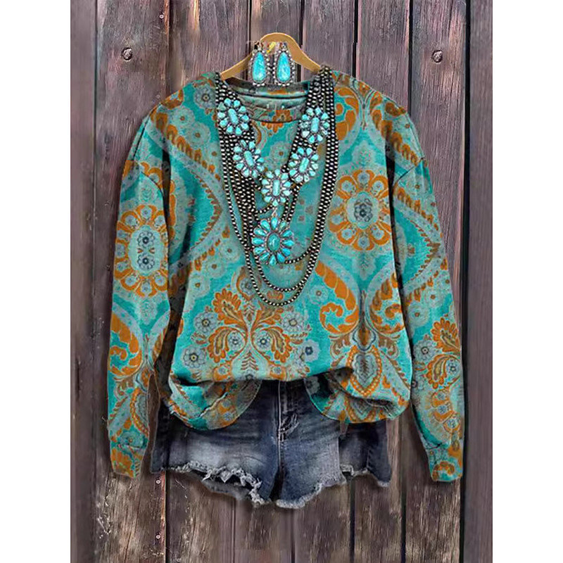 Women's T Shirt Graphic Tribal Vintage Fashion Stylish Long Sleeve Crew Neck V Neck Regular Tops Daily Zipper Print Blue Red Light Brown Purple Green Spring Fall Winter
