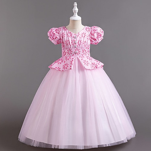 Abito da damigella d'onore bambina Ragazze Abito formale Abiti da sposa Feste Matrimonio Formale Adorabile Principessa Bello Patchwork Rete Floreale Manica Corta Girocollo Blu Rosa Dai 4 anni in su