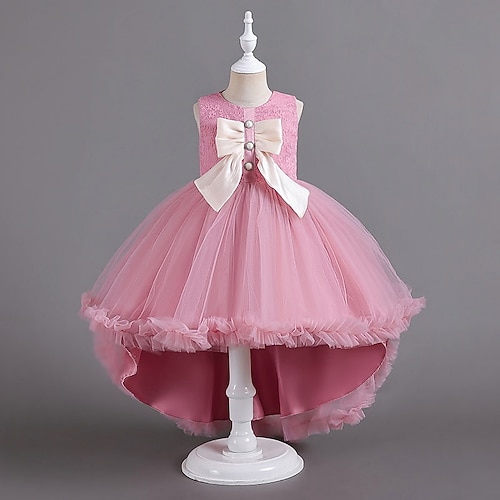 Abito da damigella d'onore bambina Da ragazza Vestito Abito da sera Vestito da festa Matrimonio Feste Occasioni speciali stile sveglio Da principessa Con ricami Con fiocco Tinta unita Senza maniche