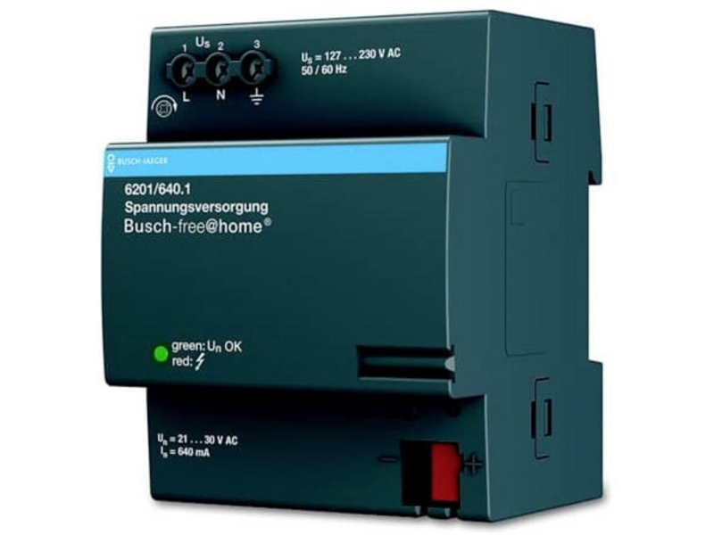 Busch-Jaeger 6201/640.1. tulojännite: 127 - 230 V, AC-tulotaajuus: 50/60 Hz, lähtöjännite: 30 V. virtalähde: Sisäverkkoon, käyttötarkoitus: Yleiskäyttöinen, virtatyyppi: AC-to-DC. tuotteen väri: Harmaa, väriryhmä: Harmaa. määrä pakkauksessa: 1 kpl. leveys: 72 mm, syvyys: 64 mm, korkeus: 90 mm (6220-0-0001)