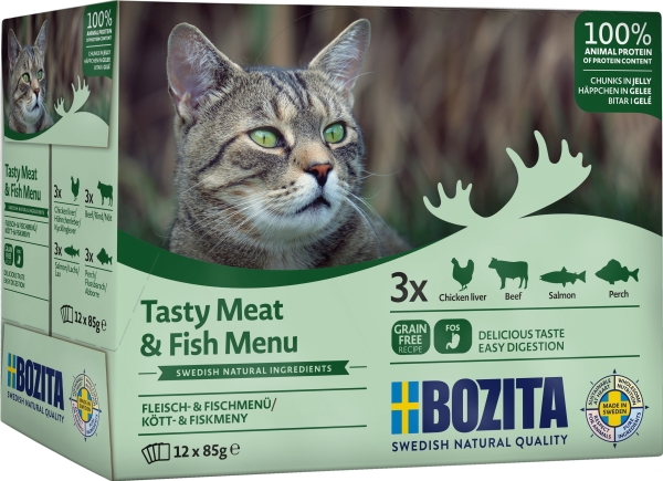 Bozita 9110336, Adult, Any breed, Beef, Salmon, Chicken liver, Perch, 85 g, Grain free