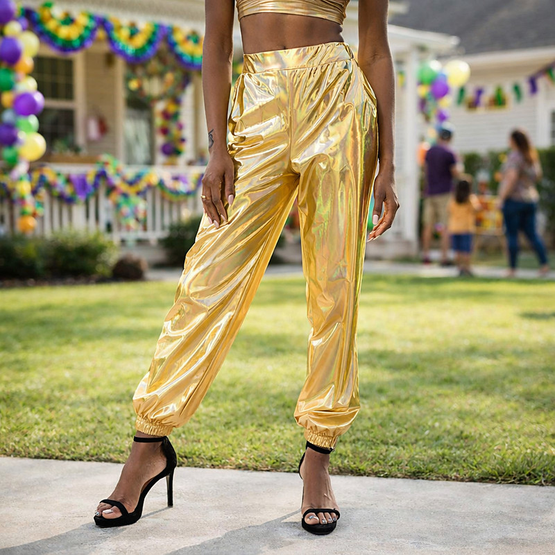 Women's Pants Cargo Pants Loose Pants Hip Hop Dance Costumes Spicy Girls Laser Holographic Shiny 1980s Silver Black Golden Pink Brown