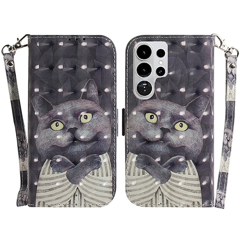Mobilfodral för Samsung Galaxy S26 Konstläder med handledsrem - Fjäril Katt