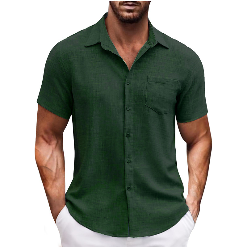 Men's Shirt Summer Shirt Casual Shirt Beach Shirt Button Up Shirt Black Navy Blue Dark Green Brown Light Grey Short Sleeve Plain Vacation Daily Clothing Apparel Fashion Casual Comfortable