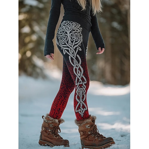 Leggings Boho Viking da donna in stile vintage per le vacanze a lunghezza intera vita alta grafica a motivo geometrico astratto con cordoncino patchwork stampa termica calda morbida traspirante