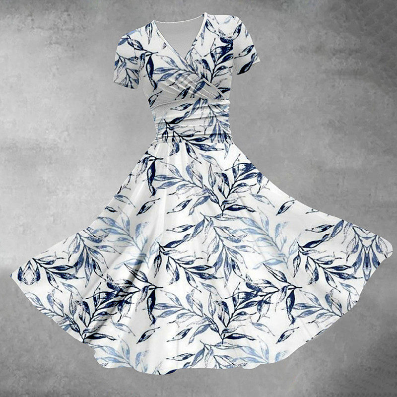 Women's Midi Dress Casual Dress Summer Dress Fashion Modern Daily Beach Weekend Regular Fit Leaf Short Sleeve V Neck Blue Spring Fall