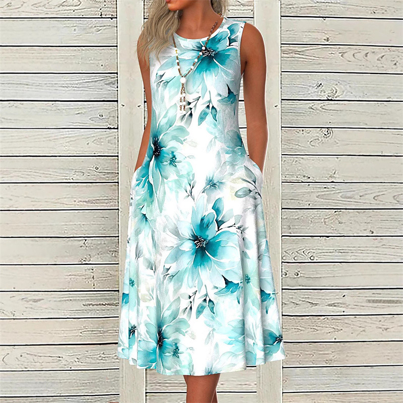 Women's Midi Dress Casual Dress Summer Dress Fashion Modern Daily Beach Weekend Regular Fit Flower Sleeveless Crew Neck Blue Spring Fall