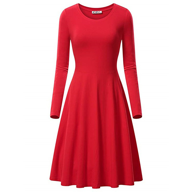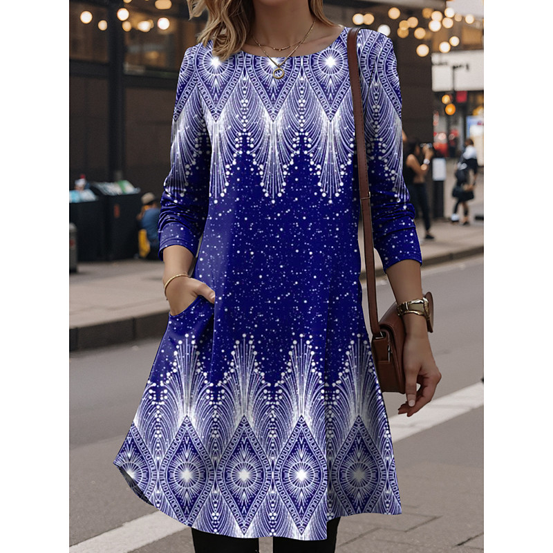 Women's Midi Dress A Line Dress Fit And Flare Dress Vacation Casual Daily Regular Fit Graphic Geometric Long Sleeve Crew Neck Black White Red Blue Summer Spring Fall Winter