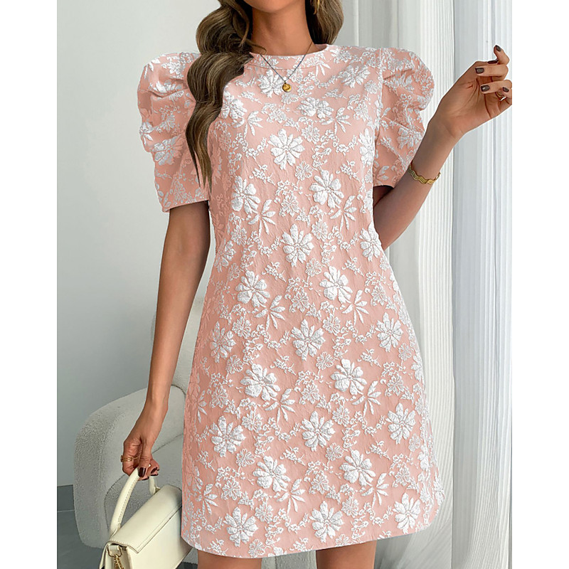 Women's Mini Dress Print Dress Vintage Puff Sleeve Daily Outdoor Going out Regular Fit Floral Short Sleeve Crew Neck Blue White Pink Summer Spring
