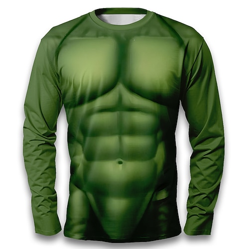Halloween Herren Muskel Simulation Kostüm T Shirt Langarm T-Shirt 3D-Druck Rundhalsausschnitt Hemd Mode Übertrieben Straße Lässig Täglich Burgunderrot Grün Grau Sommer Frühling Herbst Bekleidung S M