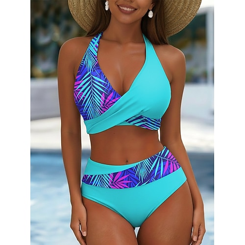 Costume da bagno bikini 2 pezzi donna gonna a palme per le vacanze moda grafica floreale scollo a V senza maniche