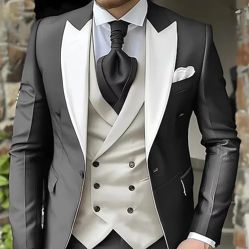 Herren Abschlussball Winterhochzeit Partyanzüge Steigendes Revers Weiß Burgunderrot Mode Party Patchwork Figurbetonter Schnitt 3-teilig Einreiher - 1 Knopf