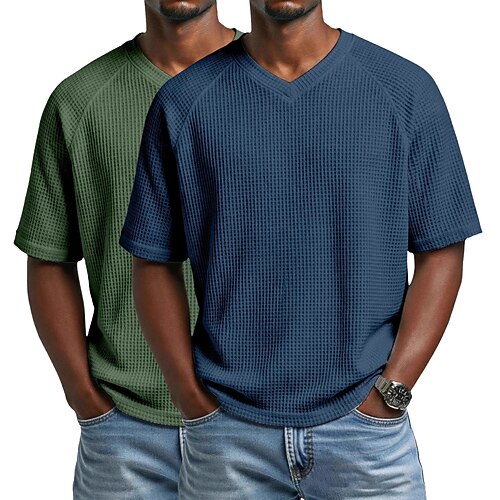 2 pezzi t-shirt waffle da uomo maglietta a maniche corte scollo a V estate tinta unita testurizzata moda designer casual 2 pezzi multipack maniche raglan casual quotidiano esterno bianco nero top