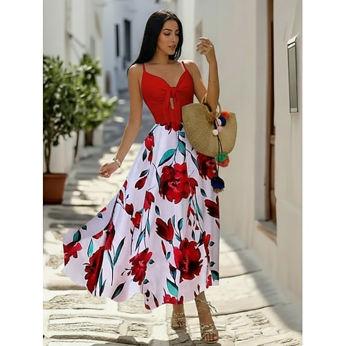 Per donna Abito Midi Abito da laurea Vestito a ruota Abito Estivo Abito Sottoveste Moda All'aperto Ferie Data Vestibilità regolare Leopardo Fiore Senza Maniche Spalline Nero Bianco Avorio Rosso Estate