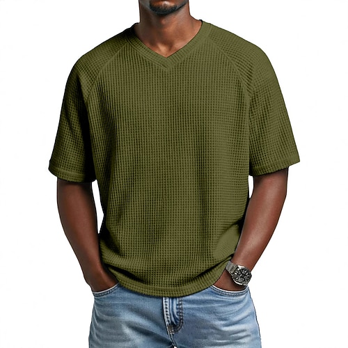 Da uomo Maglietta Waffle Maglietta Manica Corta Scollo a V Estate Tinta unica Moda Designer Casual Manica corta Casuale Quotidiano All'aperto Blu chiaro Nero Bianco Maglietta Top per Uomo