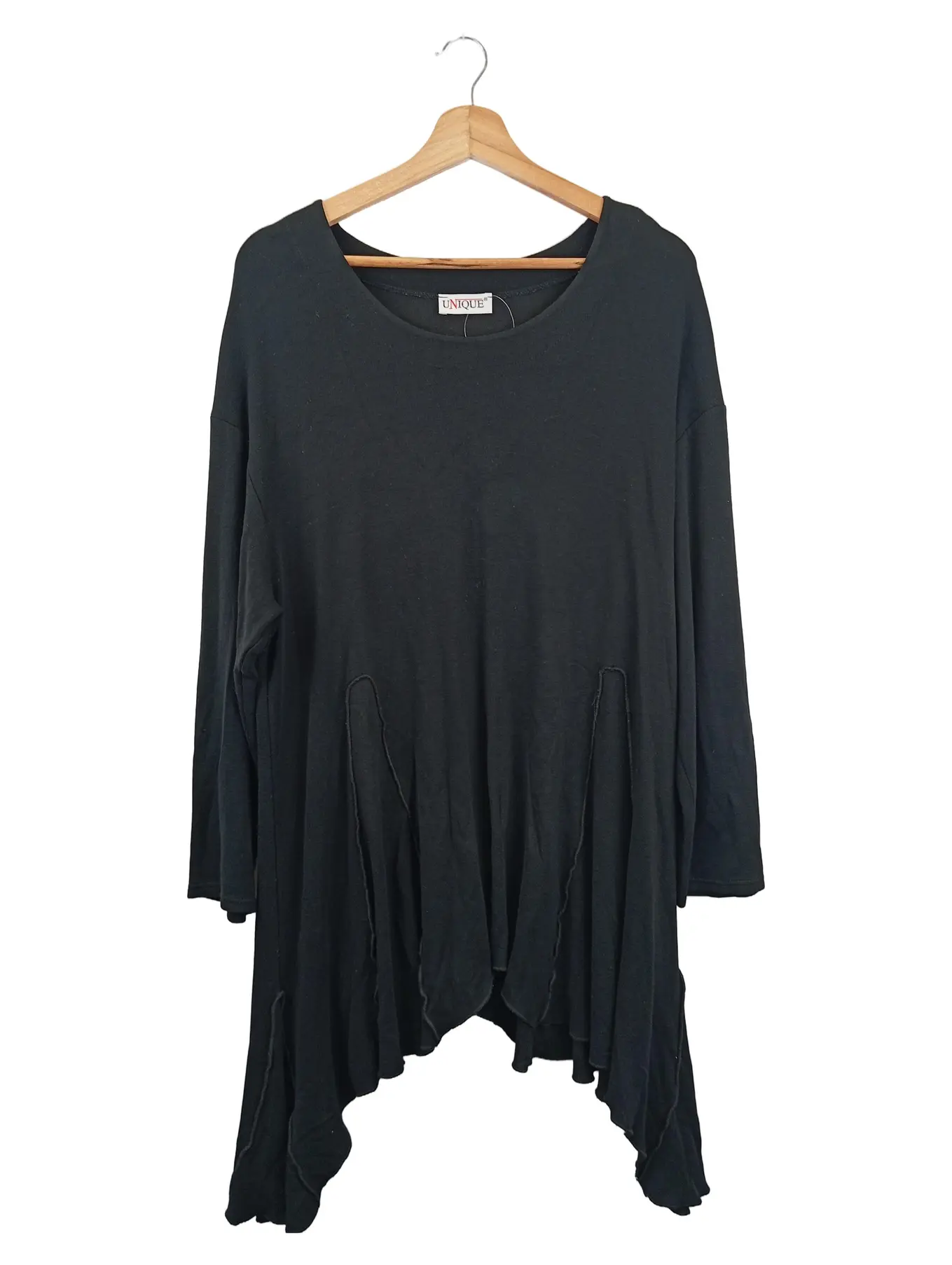 UNIQUE Damen Pullover Schwarz Asymmetrisch Casual Look Gr. M
