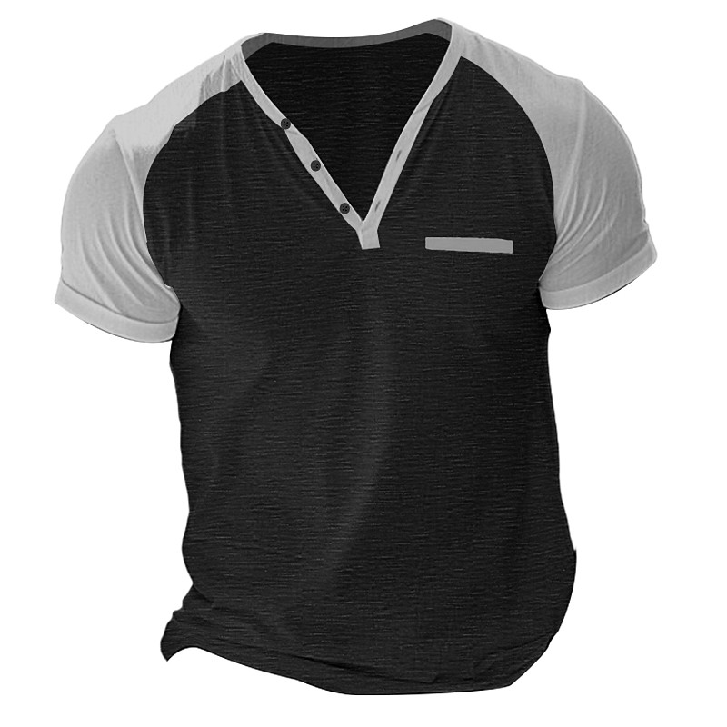 Men's Tee Top Short Sleeve Short Sleeves Henley Summer Solid / Plain Color Casual Casual / Sporty Color Block Buttons Raglan Sleeves Sports Outdoor Casual Sports Wine Yellow Light Gray Top Tee for